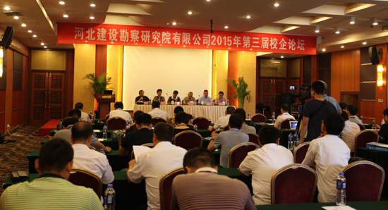 2015年8月8日~9日,“第三屆河北建設(shè)勘察研究院有限公司校企論壇”在石家莊市舉行。會議由勘察大師梁金國同志主持,住房和城鄉(xiāng)建設(shè)廳領(lǐng)導、公司李華偉總經(jīng)理、聶慶科總工程師出席并作了重要講話。石家莊鐵道大學土木工程學院王明生院長代表參會院校講話。參加會議的院校共19所,公司首席工程師和部分技術(shù)人員參加了會議。