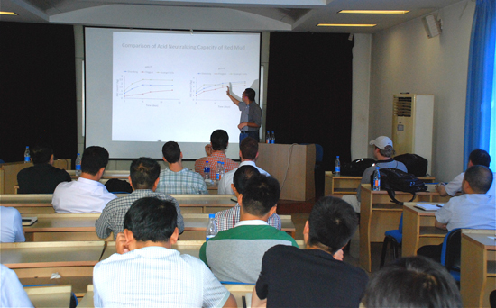 本次報告分為三個部分:胡偉博士介紹了赤泥地質(zhì)聚合物的最新研究成果;何強(qiáng)教授介紹了赤泥用于煙氣脫硫的最新研究成果;四名美國學(xué)生就各自的研究方向和在中國的見聞,對交通、環(huán)境的可持續(xù)發(fā)展進(jìn)行了介紹。報告會使我公司工程技術(shù)人員進(jìn)一步了解了赤泥研究課題取得的成果與進(jìn)展、巖土工程材料國際前沿動態(tài)、國際上的研究思路,同時也了解了美國人眼中的中國發(fā)展,此次到場參與報告的美方學(xué)生也表示有很大收獲。