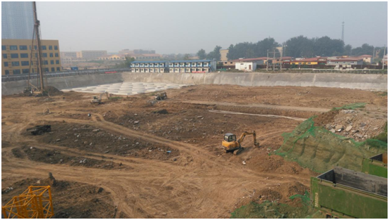 本工程于2014年5月25日開始施工,2017年8月15日完成全部施工內容,施工期間參建人員32人,投入錨桿機、深層攪拌樁機、打井機等設備共6臺。完成土釘墻5038㎡、降水管井1286延米、深層攪拌樁6231延米、設計專家論證一項及后期降水維護。