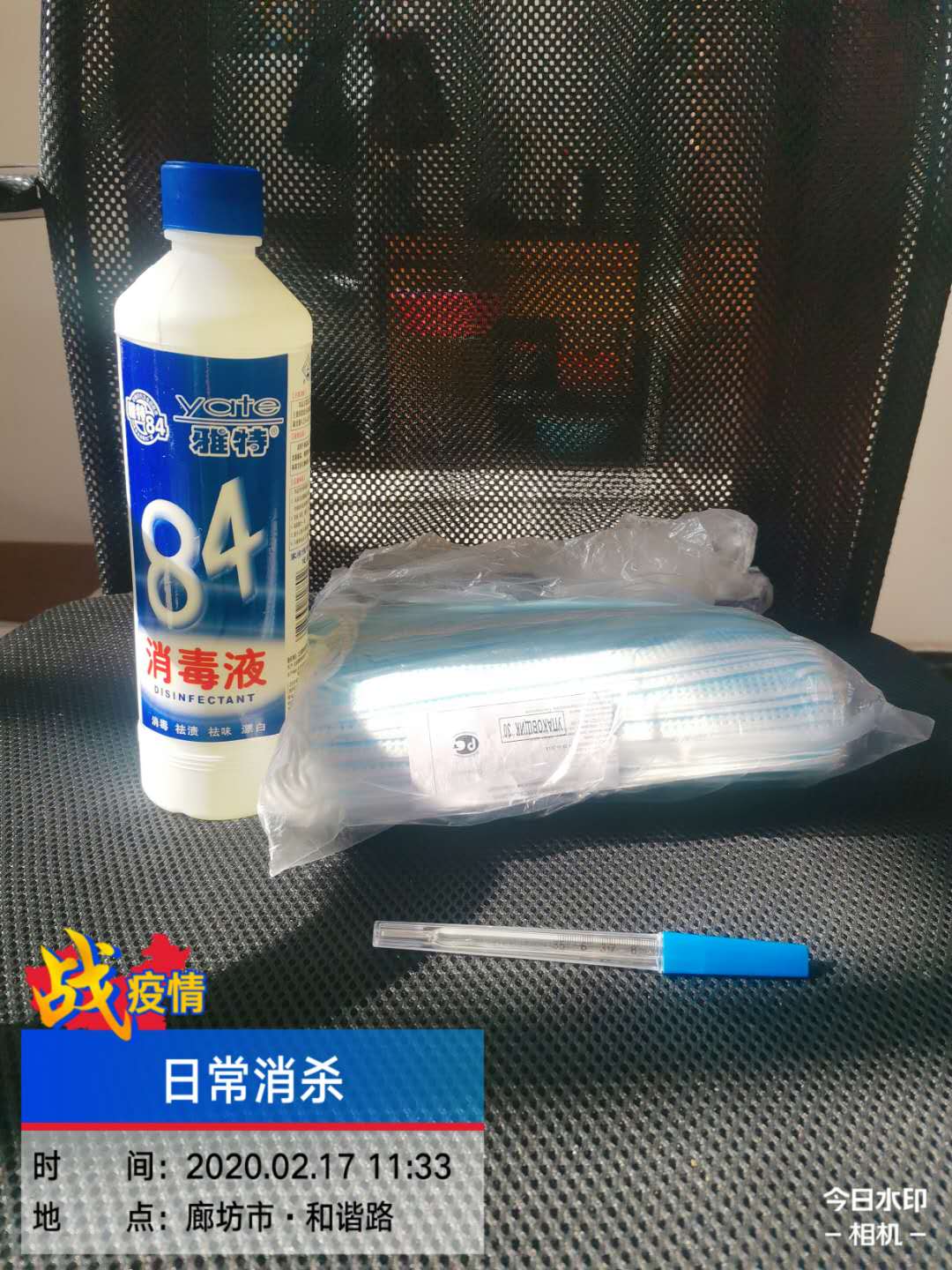 項目部加強對醫用口罩、84消毒液、體溫計、測溫器等物資的采購儲備工作。由于疫情發展較快,防疫物資受政府管控,采購異常艱難,公司發動項目部通過各種關系積極主動聯系,通過各種渠道采購防控物資,目前各項目部防控物資均能滿足生產需要,并為復工做好儲備。