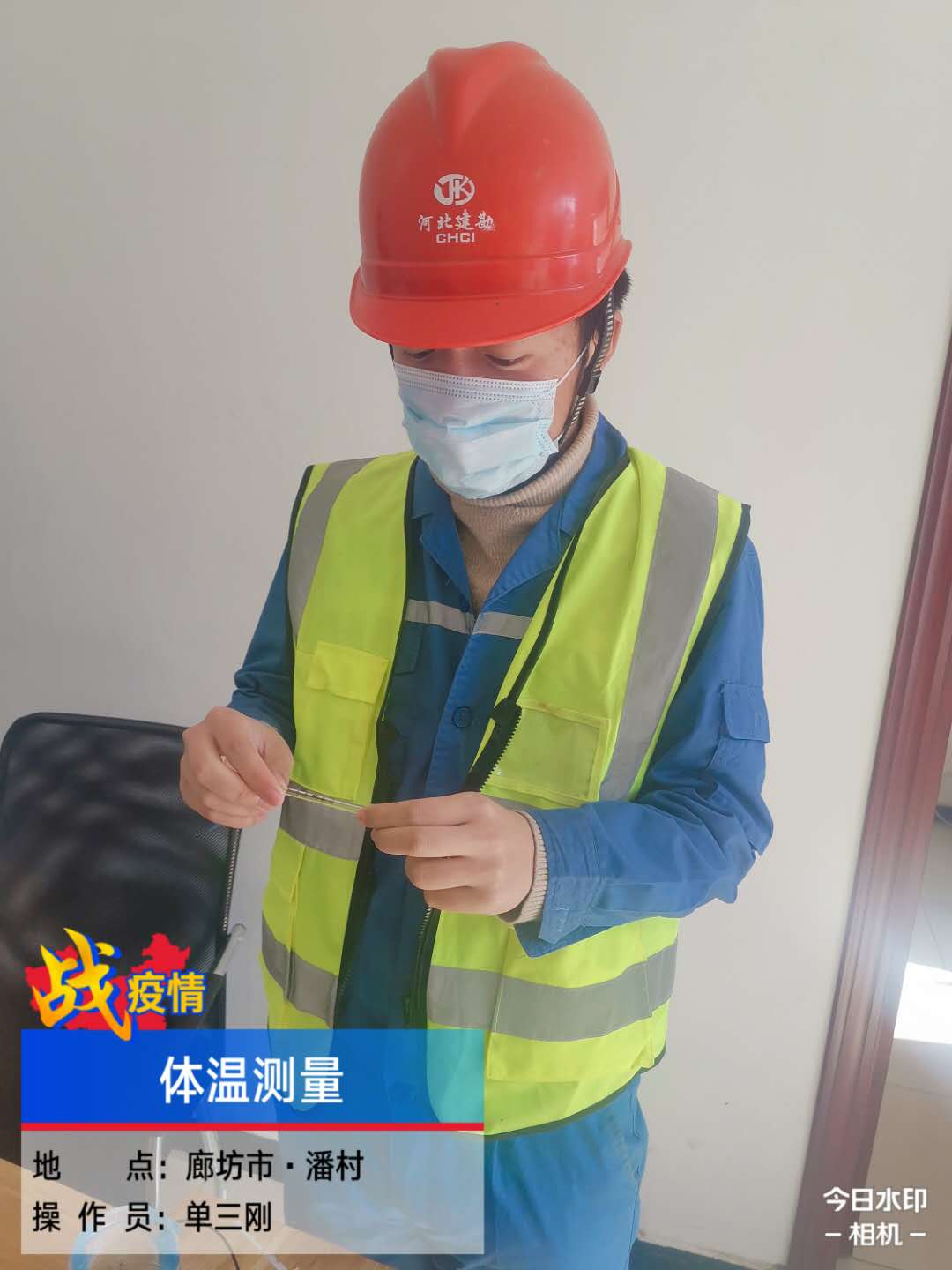 針對在崗人員值班人員,登記造冊。每日(每人每日不少于2次)開展人員體溫量測工作,并做好記錄,建立體溫量測表,每天19:00前將記錄表上傳至微信群中。發現異常情況,及時匯報給上級部門,積極幫助項目部采購防護物資,對值班人員因疫情不能換班回家進行了補貼。
