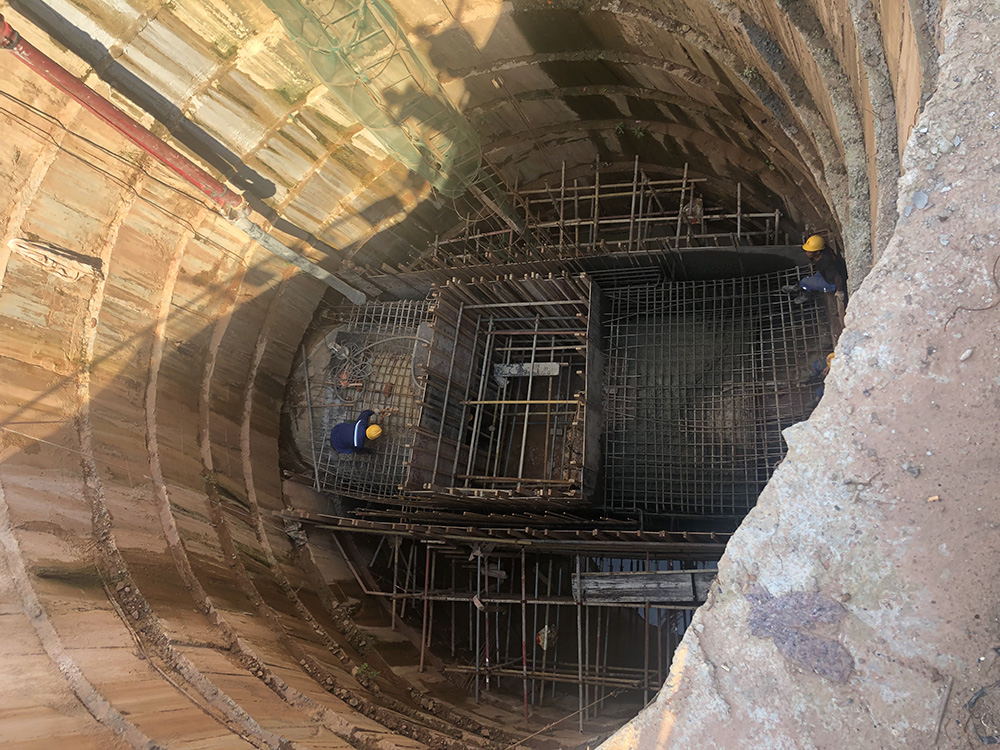 1)豎井部分:1#排水管中的1#工作井,2#排水管中的4#、5#、6#工作井和5#、6#接收井,共計4個工作井,2個接收井。工作井外徑尺寸為10500mm,接收井外徑尺寸9400mm。采用鋼筋混凝土澆筑而成。