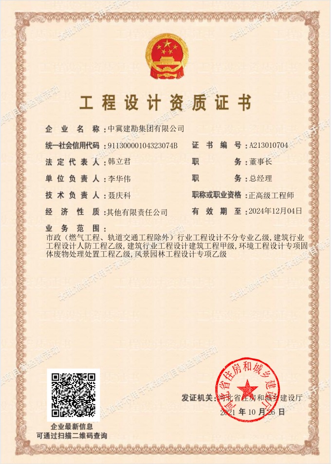 公司于2021年10月26日取得了環(huán)境工程設(shè)計(jì)專項(xiàng)(固體廢棄物處理處置工程)乙級(jí)資質(zhì)證書(shū),可承擔(dān)中型以下規(guī)模環(huán)境工程(含建構(gòu)筑物和非標(biāo)準(zhǔn)設(shè)備等)專項(xiàng)設(shè)計(jì)。