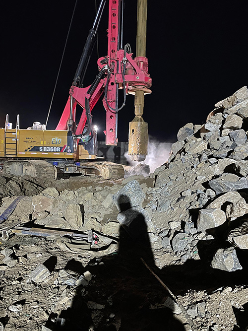 本工程自2022年01月05日開工,2022年03月09日完工。完工后,經檢測本工程樁基合格率100%,對施工完成的全部樁基按照低應變檢測100%,檢測結果均為一類樁。聲波檢測1根,結果為Ⅰ類樁。碎石樁及樁間土檢測6根,豎向抗壓及豎向抗拔檢測各3根,水平靜載檢測6根,各項檢測結果均滿足設計要求。