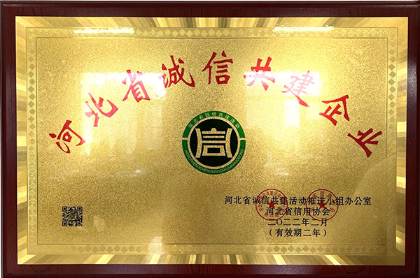 根據(jù)河北省信用辦、河北省信用協(xié)會等七部門印發(fā)的《關(guān)于開展“推進(jìn)誠信建設(shè)共建信用河北”的活動方案》的通知及《關(guān)于2021年度河北省“守合同重信用”企業(yè)申報(bào)認(rèn)定工作的通知》,我公司被評為“河北省誠信共建企業(yè)”和“河北省AAA級守合同重信用企業(yè)”。