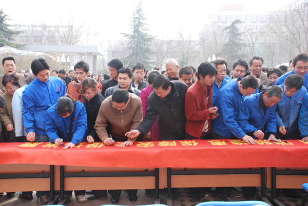 4月2日上午9時,公司機(jī)關(guān)及在外的24個工程項目部共1500多名員工,在同一時間、不同地點,隆重舉行2009年“安康杯”安全生產(chǎn)競賽活動啟動儀式暨“強(qiáng)化預(yù)防,消除隱患,保障安全,促進(jìn)發(fā)展”主題簽名活動。