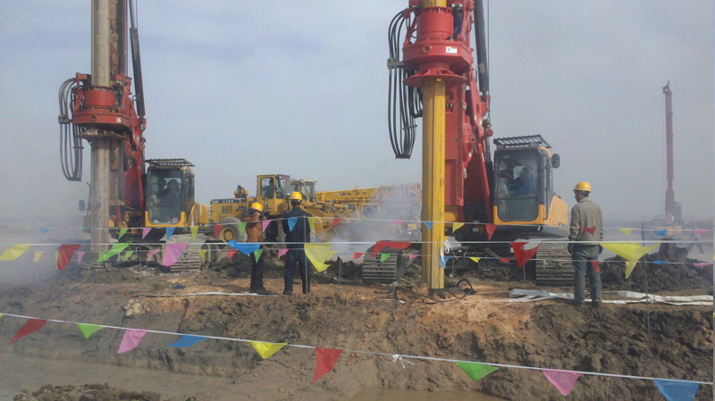 施工內(nèi)容包括:灌注樁鋼筋籠制作、運(yùn)輸及安放,鉆孔樁成孔、商品砼采買、砼灌注等工作。我公司采用旋挖鉆機(jī)成孔,樁數(shù)總計(jì)906根,樁徑600mm,樁身混凝土強(qiáng)度等級C35,灌注混凝土9103m3。