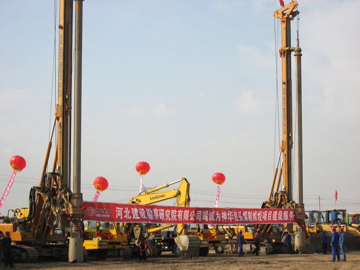 神華包頭煤制烯烴項目工業(yè)廠址位于包頭市九原區(qū)哈林格爾鎮(zhèn)西南,由包頭煤化工有限公司籌建,一期建設(shè)規(guī)模為180萬噸/年甲醇及相應(yīng)的公用工程、輔助生產(chǎn)設(shè)施。樁基工程自2007年9月23日開工,至2008年5月16日竣工,采用后壓漿旋挖鉆孔灌注樁,設(shè)計樁徑為Φ800mm,樁長為14.1~35.2m。共施工基樁3294根,設(shè)計混凝土方量為46989.9m3,實際灌注方量52128.1m3,樁身砼強度等級為C30、C35兩種。