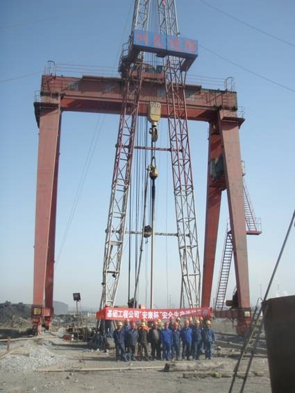 本工程成孔垂直度要求高,要求控制在1.0‰以內(nèi),投料管重量大,總重達(dá)到356t,施工難度大;經(jīng)過(guò)精心組織,質(zhì)量合格,一次交付。